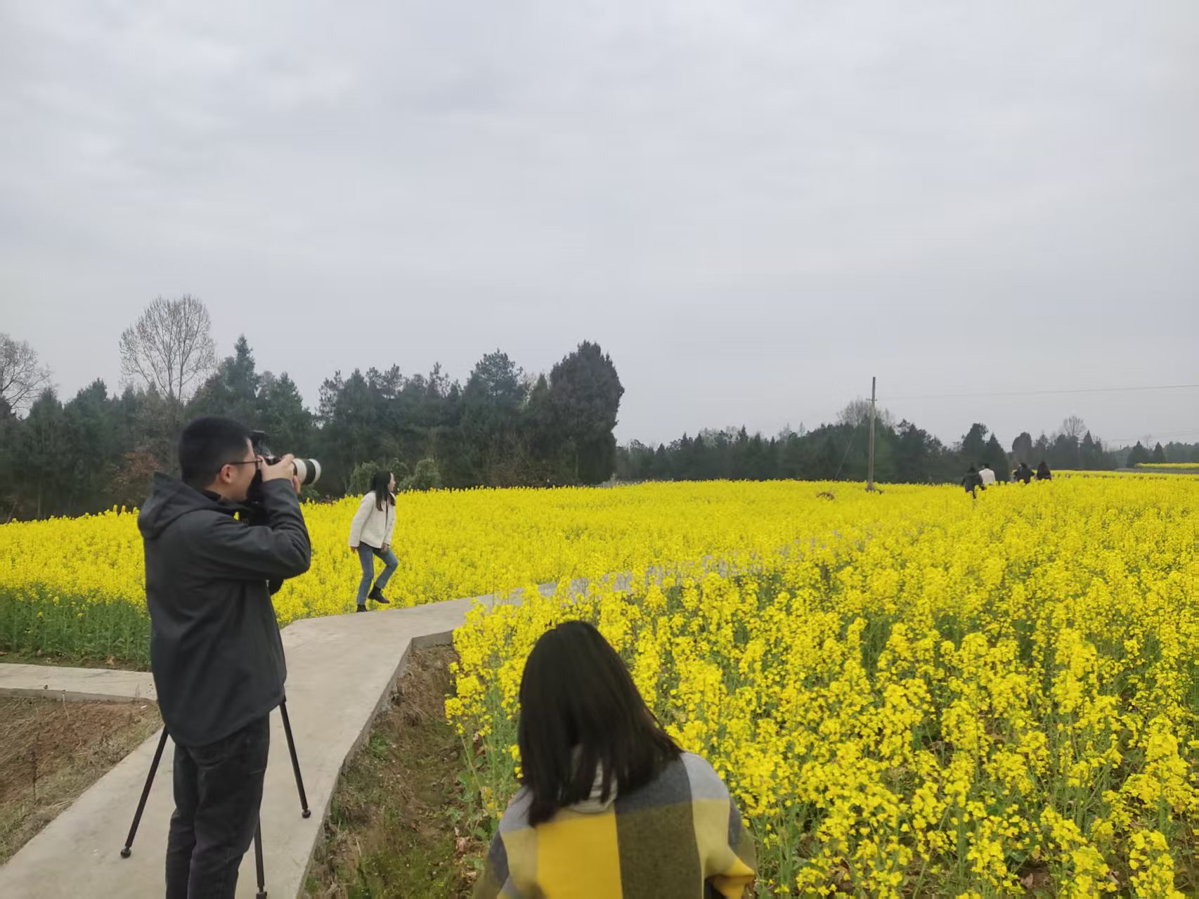 2025年春天,游客在长岭村拍摄油菜花。受访者供图